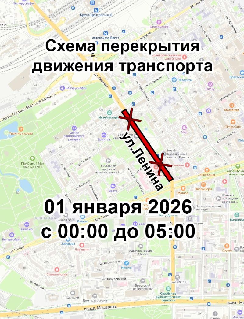 Чтобы праздники прошли безопасно, движение транспорта в центральной части города (ул. Ленина) будет временно ограничено: