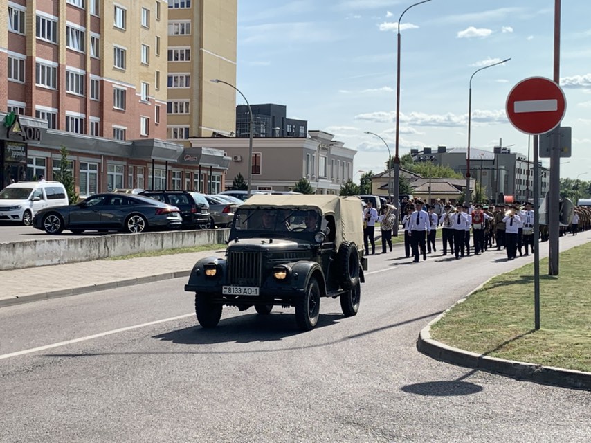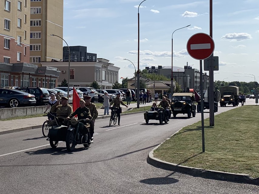 В колонне – советская техника времен 1940-х годов и сотни реконструкторов, прибывших в Брест для участия в военно-исторической реконструкции первого дня Великой Отечественной войны в Брестской крепости.