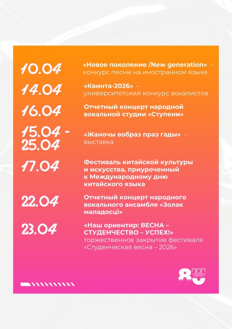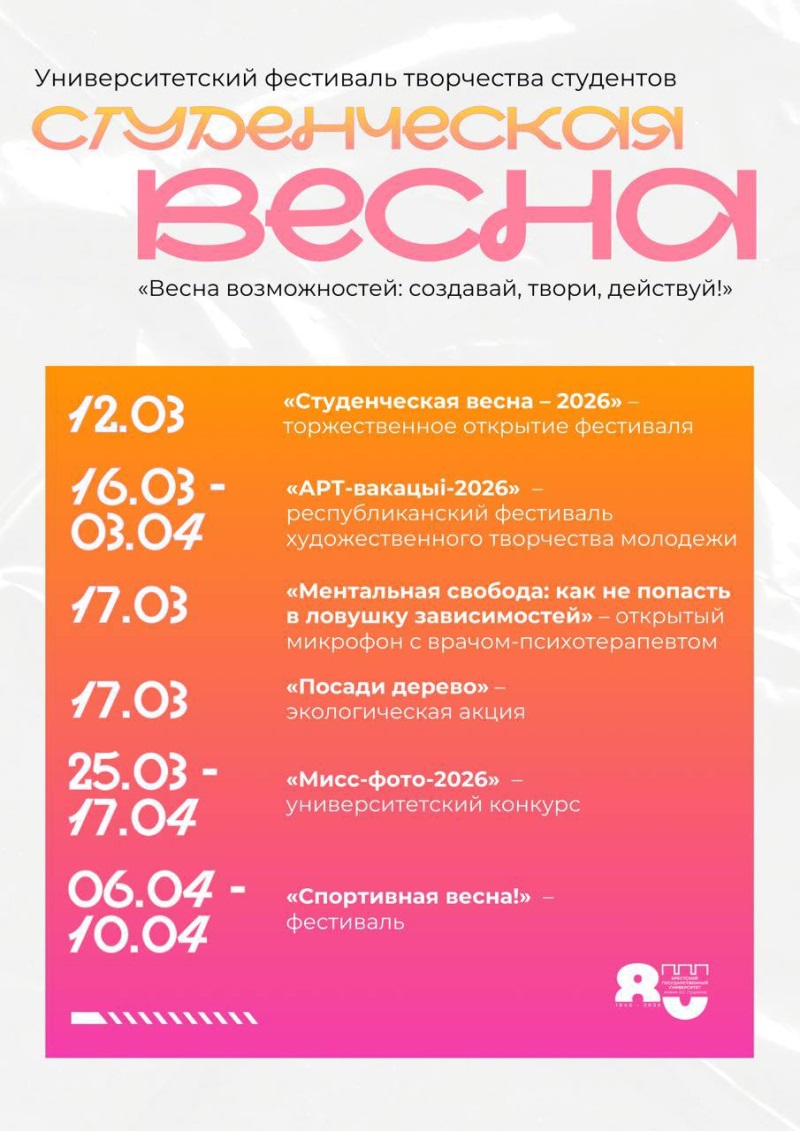 «Камера, мотор, весна!» С этими словами начался студенческий танцевальный флешмоб, который, в свою очередь, стал кульминацией открытия фестиваля «Студенческая весна – 2026». А значит весь следующий месяц запомнится конкурсами, акциями и концертами.