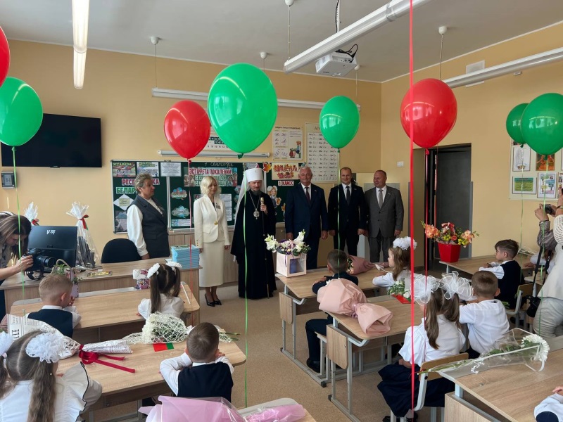 Сегодня начальная школа-сад распахнула двери для детей в столице Полесья. Поздравить учителей, воспитателей, детей и родителей приехал помощник Президента-инспектор по Брестской области Александр Ломский.
