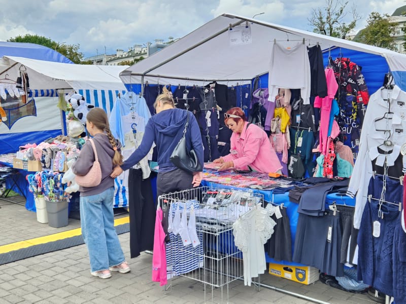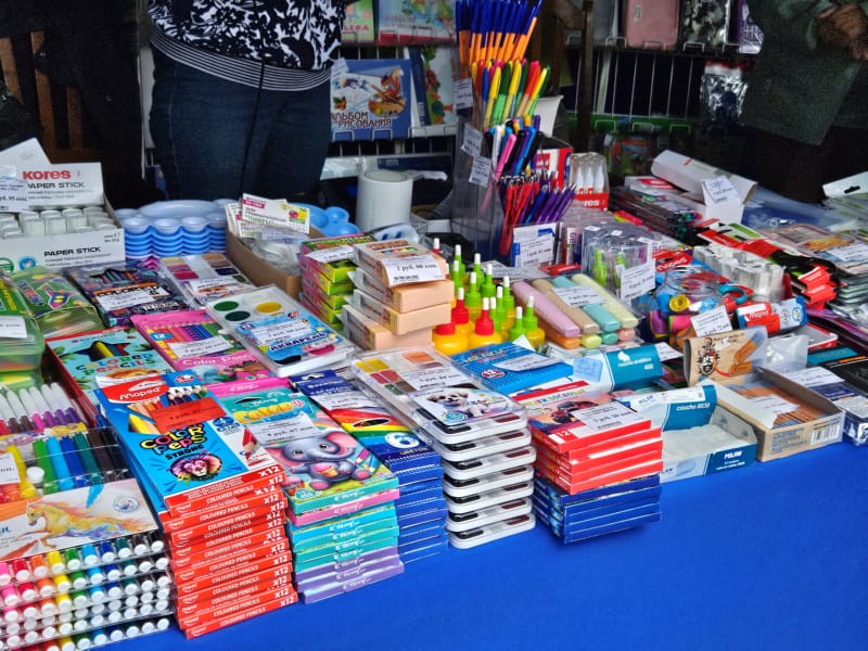 С 10 утра у входа в торговый центр можно было увидеть семьи, уверенно направляющиеся со списками покупок в руках к расположенным под открытым небом прилавкам. Кого-то интересовала конкретная модель рюкзака, кого-то – тетради определенной линовки, но абсолютно все находили здесь то, что искали.