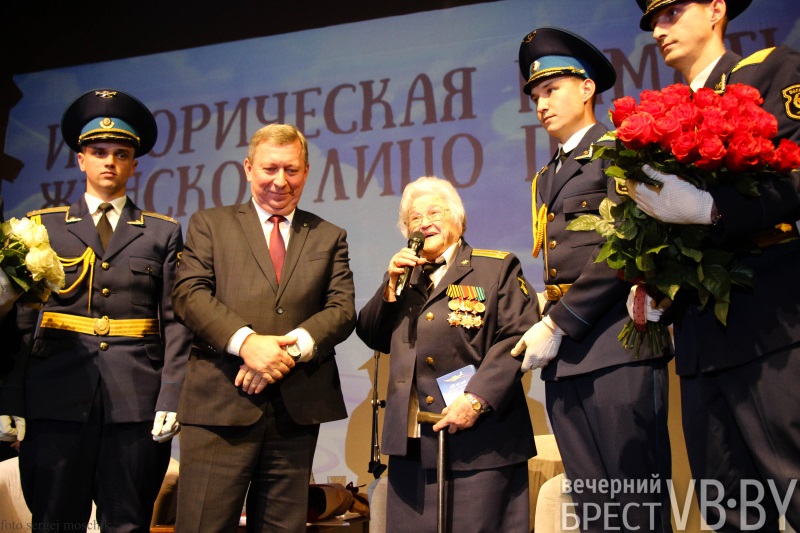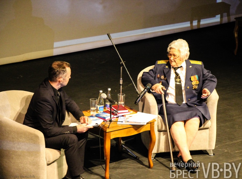 Мэр Бреста Александр Рогачук приветствовал легенду, а Галина Брок-Бельцова бодро держала ответ и раздавала подарки-книги.