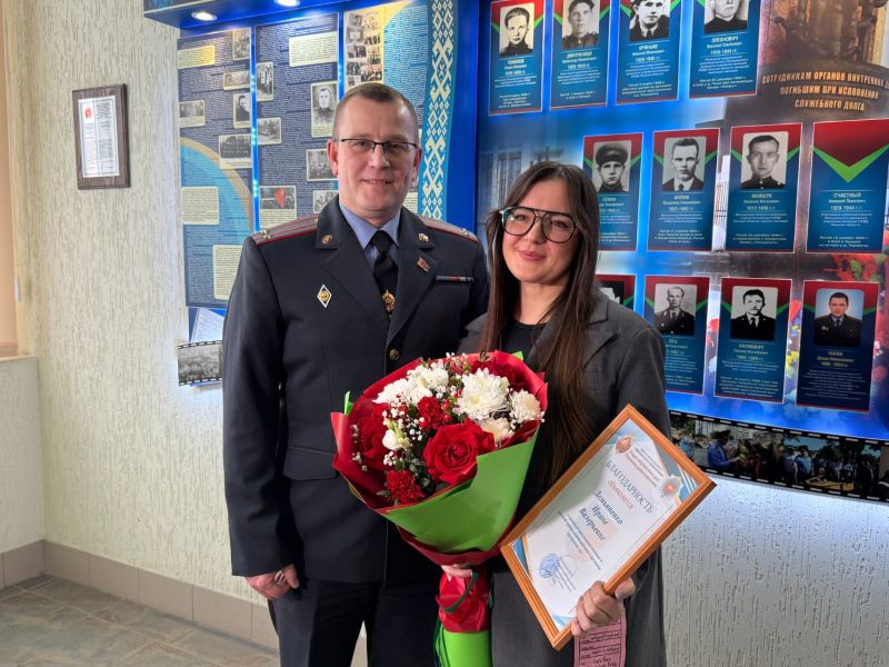 Сегодня в Пинском РОВД чествовали и наградили пинчанку, которая помогла найти пропавшего Богдана Юнчика. Парня искали всем миром и за него переживала вся страна. Начальник Пинского РОВД подполковник милиции Андрей Головач в торжественной обстановке вручил героине благодарность офицерского собрания, цветы и материальное вознаграждение.