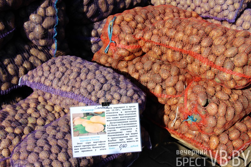 Владимир Труханович из Больших Радваничей Брестского района выглядел картофельным королем. Выбор сеток с продукцией был богатым. Один за другим поступали звонки от тех, кому продавал в минувшие годы. Вот подошла женщина, сразу взяла два мешка по 25 кг. Заплатить надо было 36 рублей, но хозяин сбросил рубль, и покупательница осталась довольна. Говорит, берет не первый раз, «бульба хорошая». Владимир выращивает второй хлеб на личном подсобном хозяйстве. Занимается сортом «Гала».