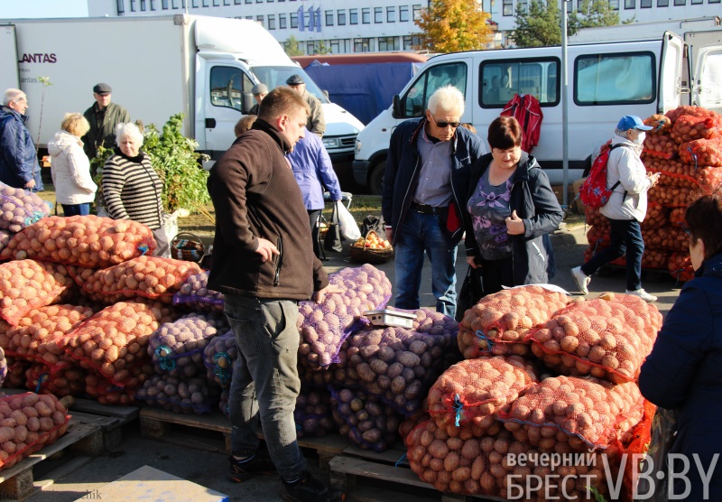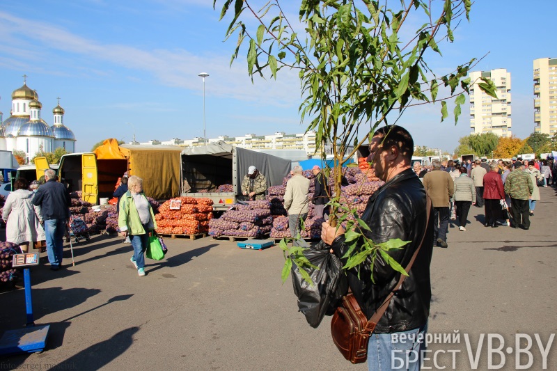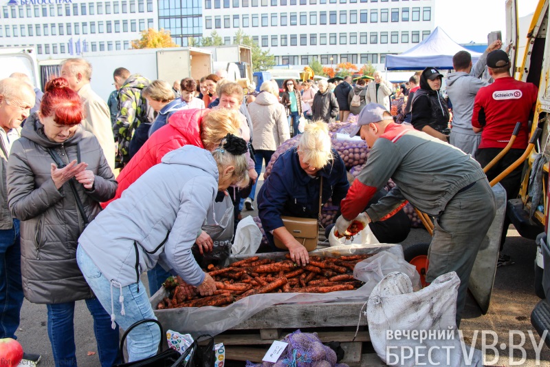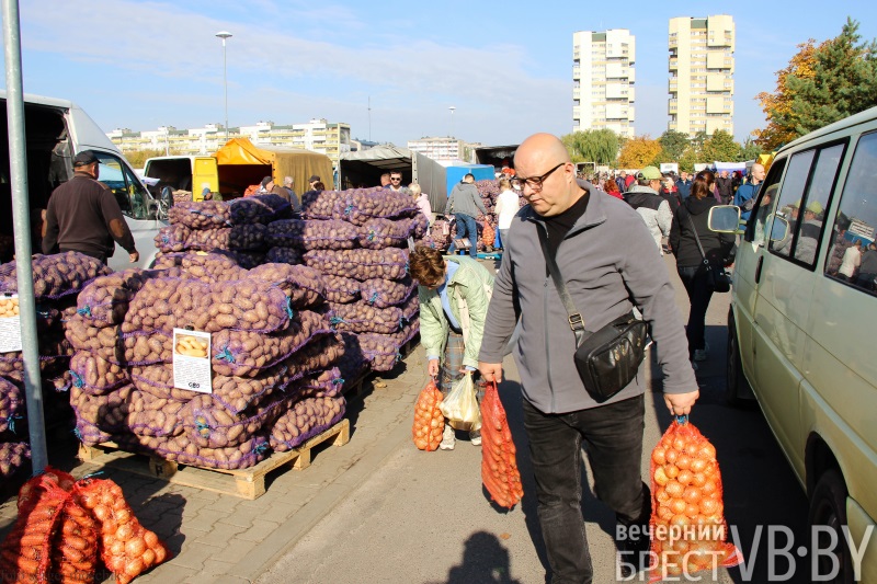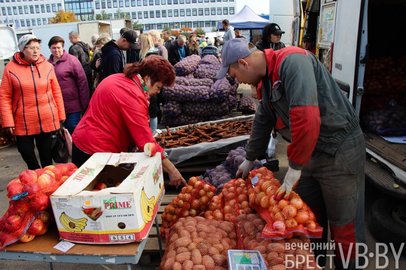 В нынешнюю субботу ярмарка около администрации Московского района Бреста (ул. Московская, 273А) проходила под громкое радио. В новостях транслировали последние известия о запрете на повышение цен и вывоз некоторой продовольственной продукции. Брестчане закупались активно, благоприятствовала погода – 18-20 градусов тепла.