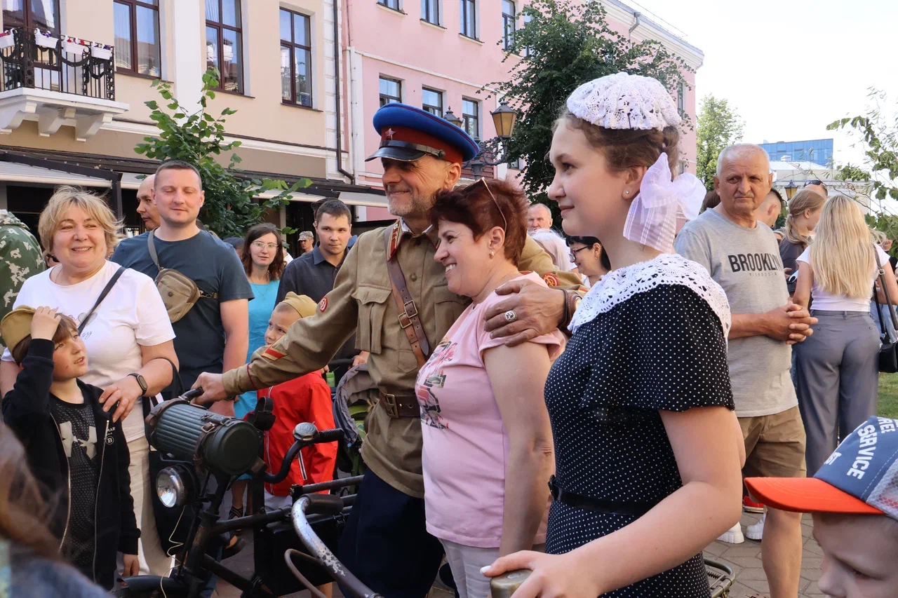 На ул. Советской в этот вечер было очень многолюдно. Брестчане и гости города с удовольствием фотографировались с реконструкторами, рассматривали ретро-технику, угощались чаем из самовара с сушками. На лицах – улыбки.