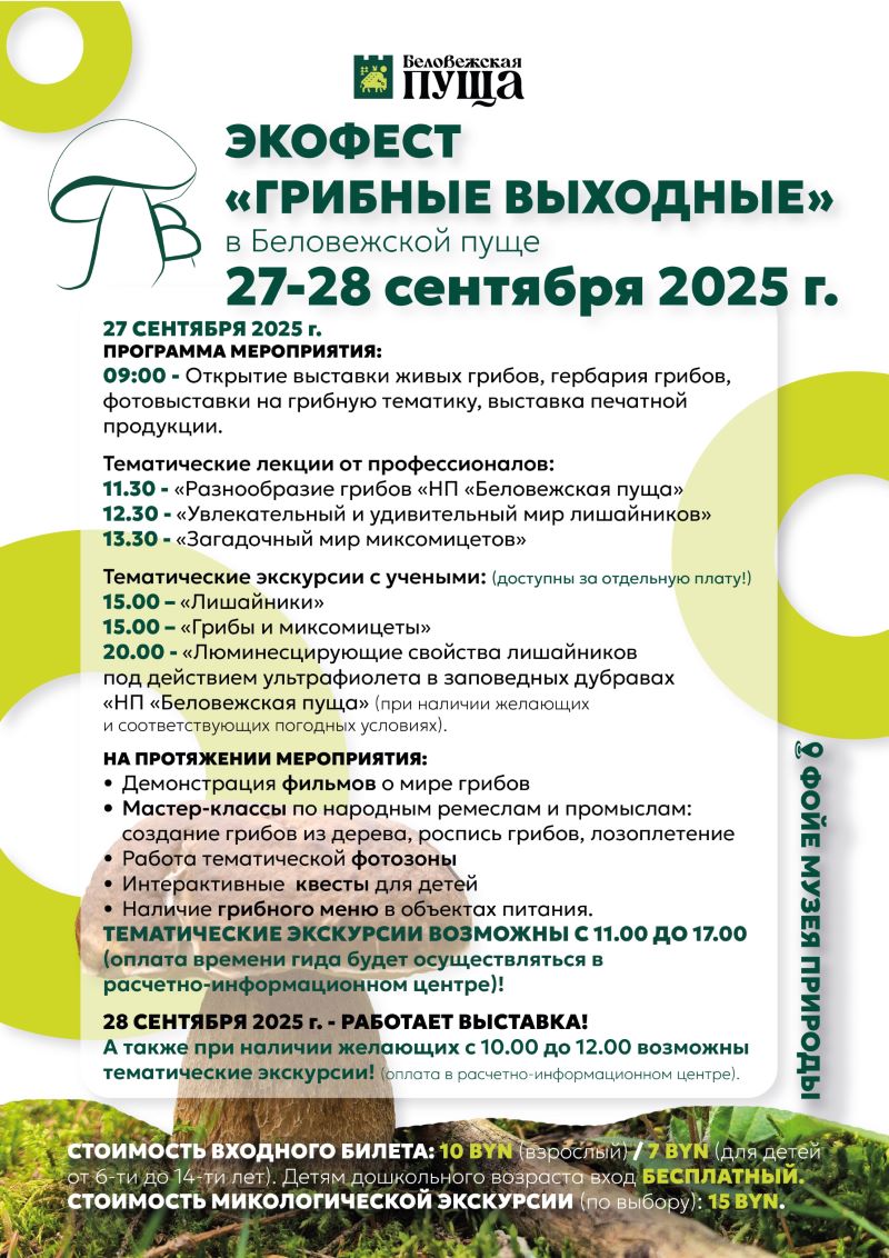 Национальный парк приглашает всех любителей природы и грибников на экофестиваль «Грибные выходные» в Беловежской пуще.