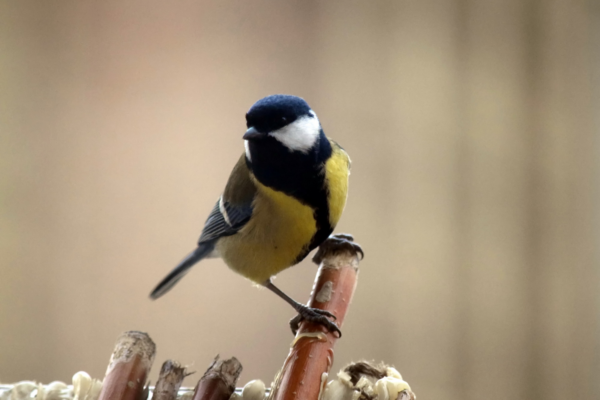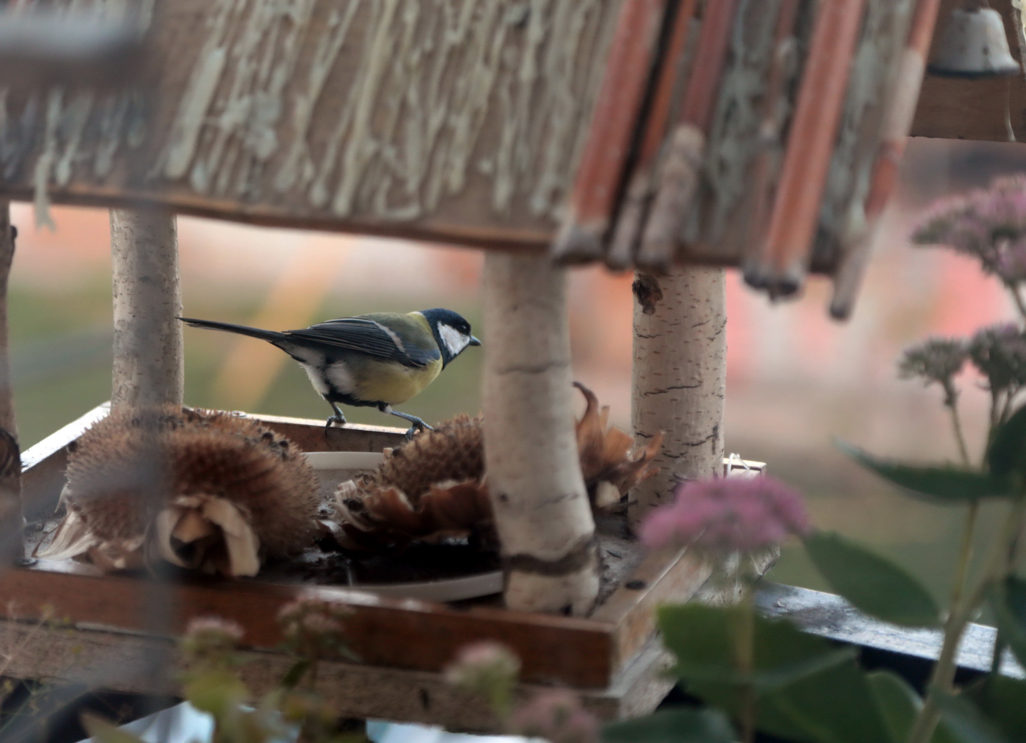 Осень бывает прекрасна в свою золотую пору и даже в ненастье. За окном на нашем балконе к кормушке с семечками подсолнечника синицы устраивают живую карусель. Можно фотографировать птичек, обидно, что через стекло, больно они пугливы.
