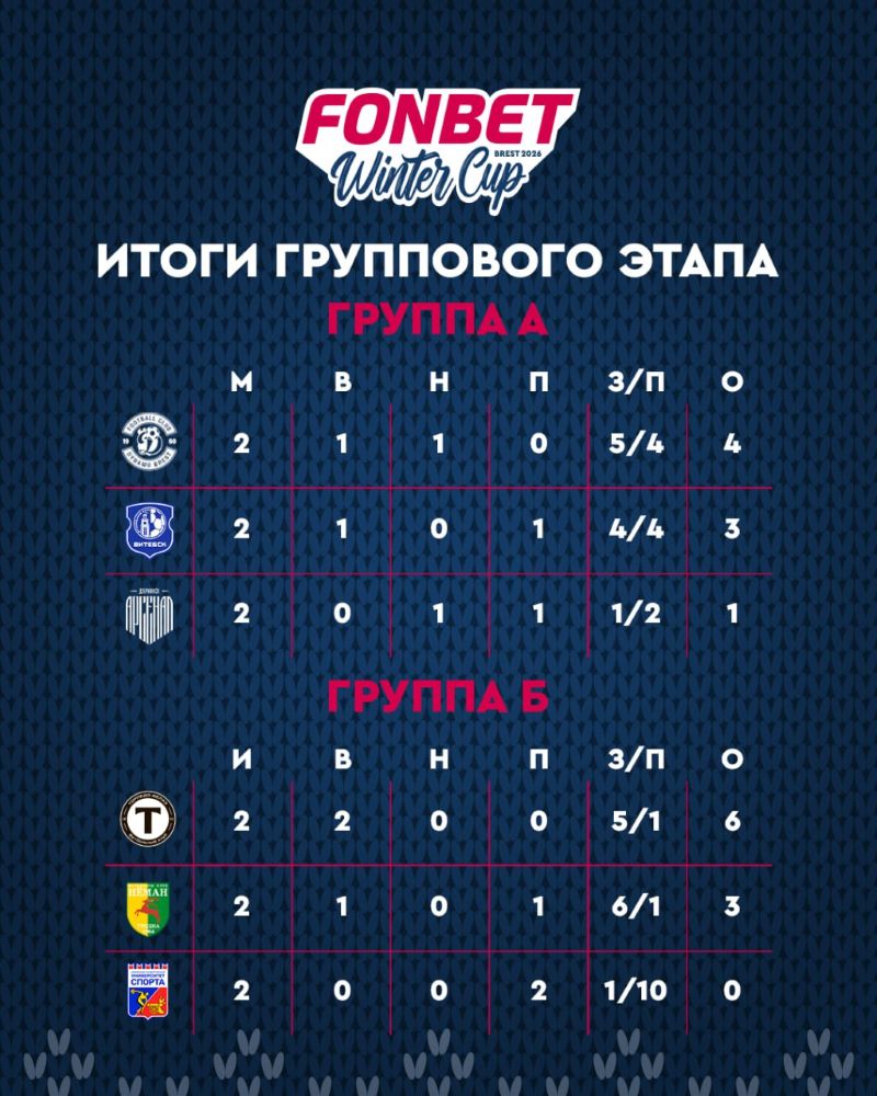 в 17:00 «Динамо-Брест» и «Торпедо-БелАЗ» разыграют титул чемпиона FONBET Winter Cup 2026.