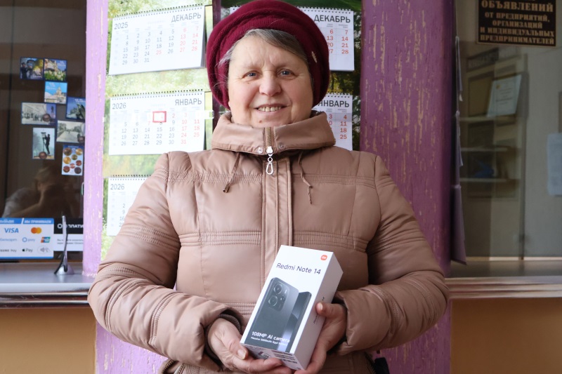 Сегодня же Галина Ивановна Шумик из микрорайона «Речица» получила в редакции главный приз — новенький смартфон.