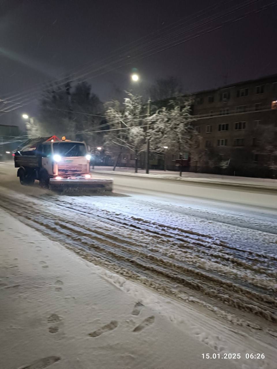 На расчистке главных магистралей, улиц и мостов работает 25 единиц специализированной снегоуборочной техники.
