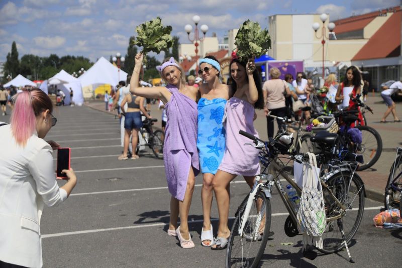 — Мы подумали: все будут в платьях, а мы устроим карнавал, — признались они нашим корреспондентам и позировали с банными вениками в руках.