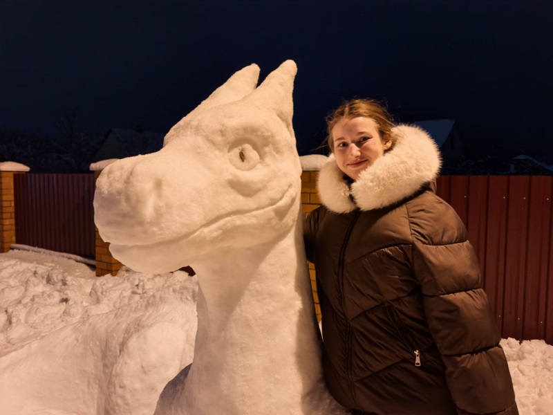 Вчера мы сообщали о 4-метровом снеговике в деревне Маньковичи, а сегодня появилась информация, как студентка-медик из Столина за ночь превратила сугроб в сказочного дракона!