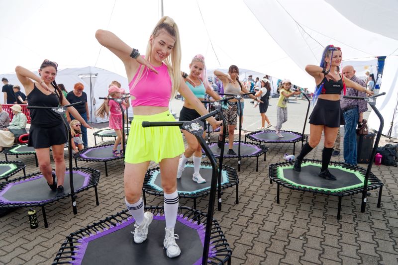 — В отличие от других видов спорта при занятиях джампингом полотно 80 процентов нагрузки принимает на себя, рассказывают девушки. — Это то же самое, что прыгать в воде. Когда люди смотрят на наши прыжки, думают, что от этих упражнений страдают колени, суставы. На самом деле это один из самых безопасных видов фитнеса, он же ещё и весёлый. Могут заниматься люди любого возраста — и малыши, и те, кому за шестьдесят.