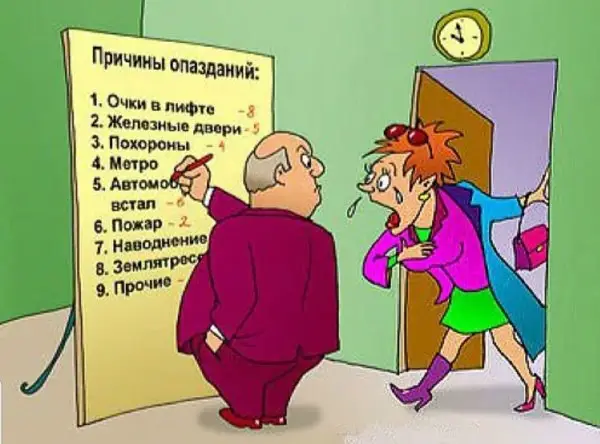 - Опоздал на работу на шесть часов из-за того, что вчера задержался на дегустации новой линейки продукции завода «Кристалл». Утром, с 8.00 до 14.00 вспоминал, где я работаю, пока не пришла мама и не подсказала.